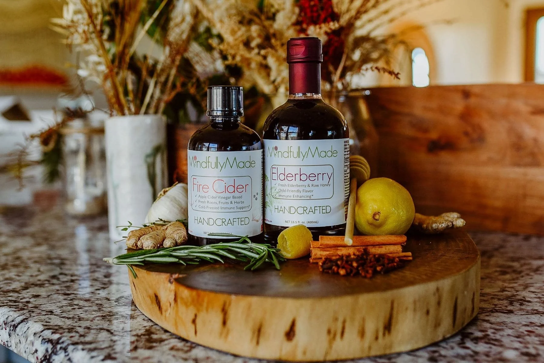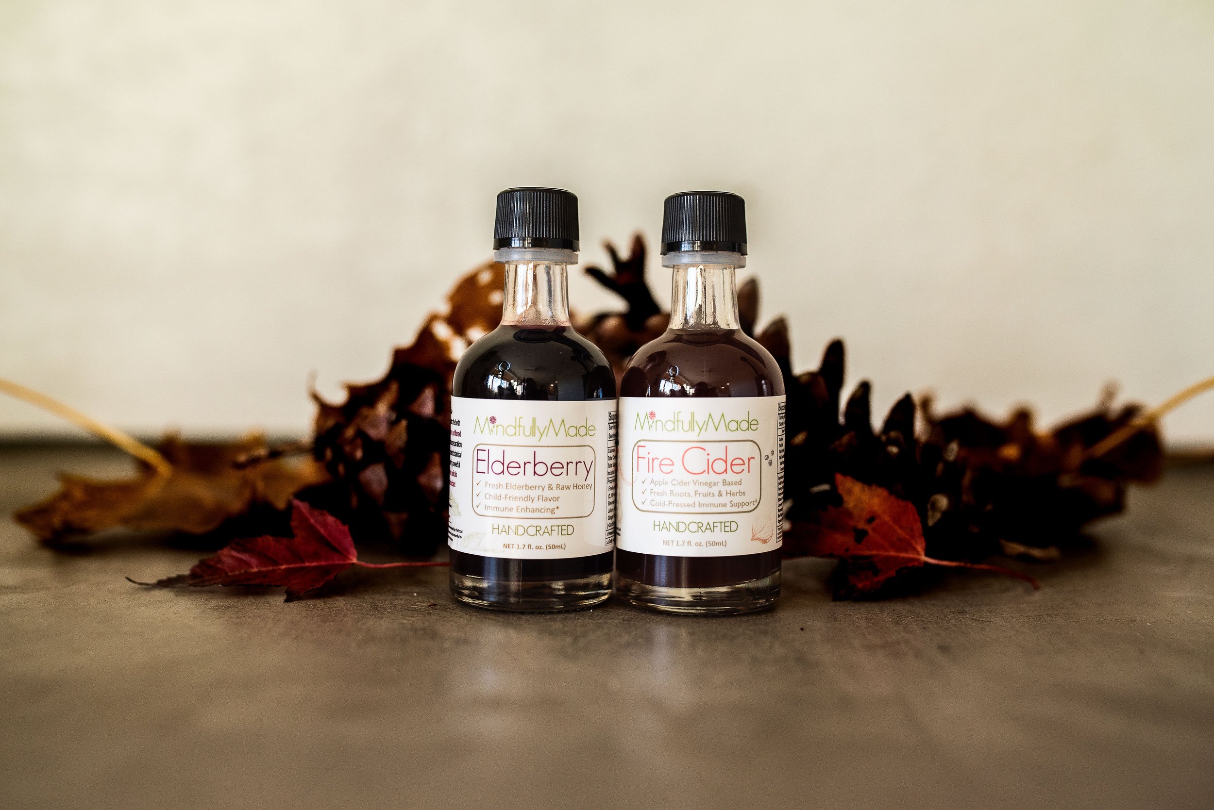 The set includes our signature Elderberry Syrup or Fire Cider in full size bottles - both crafted in small batches with whole ingredients, raw honey and time-honored herbal traditions.