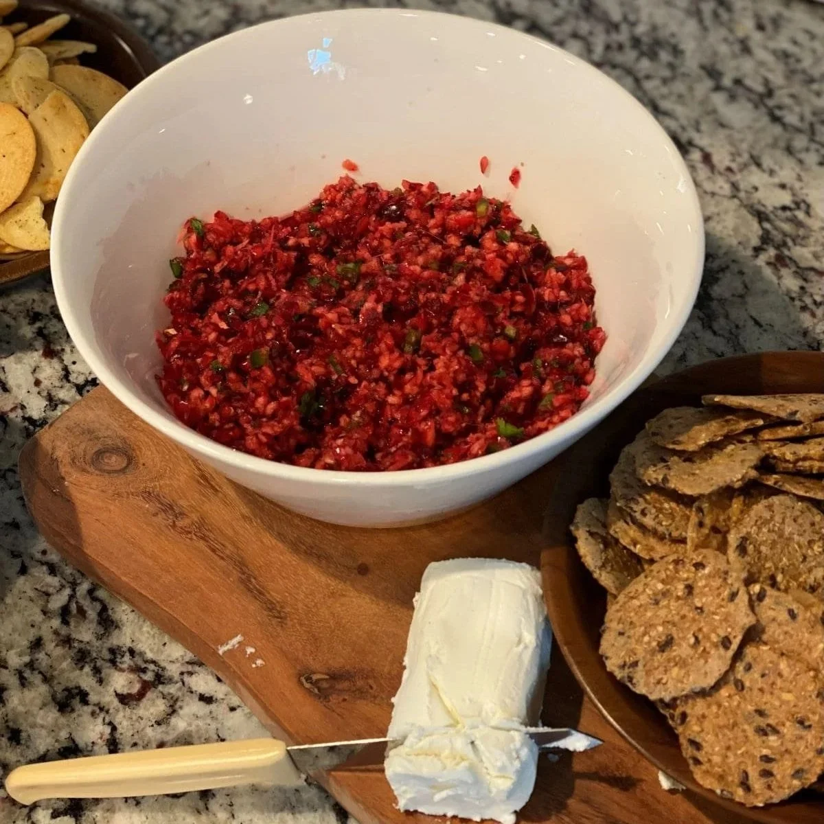 This cranberry salsa is made with fresh cranberries, jalapeño, cilantro, ginger and a touch of lemon - no cooking required. It’s bright, refreshing, and the perfect holiday appetizer to serve with goat cheese and seed crackers. If you’re looking for something new to bring to a Thanksgiving or Christmas gathering, this is the dish everyone will ask you the recipe for.